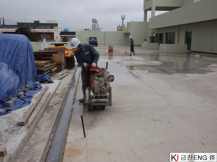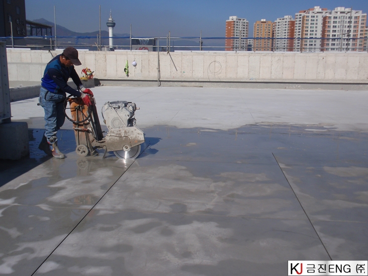 신축줄눈컷팅 및 코킹 | 00농협 신축공사 중 옥상 줄눈컷팅 및 코킹