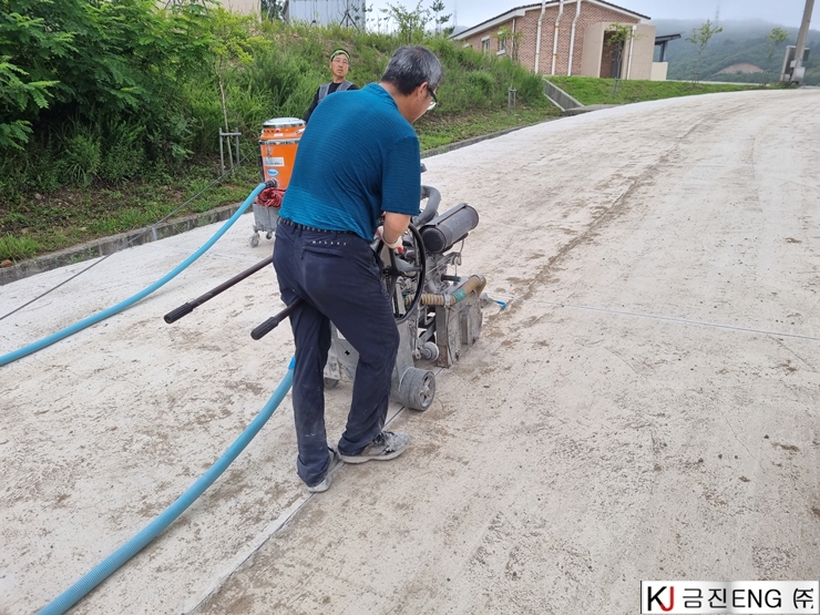신축줄눈컷팅 및 코킹 | 포항 000군부대 도로포장공사 중 신축줄눈컷팅 및 코킹