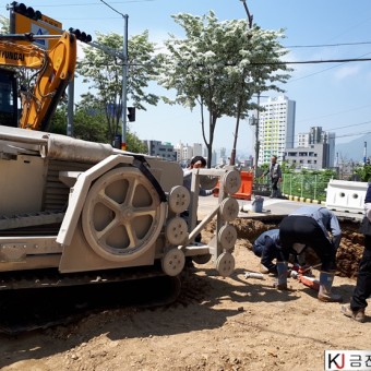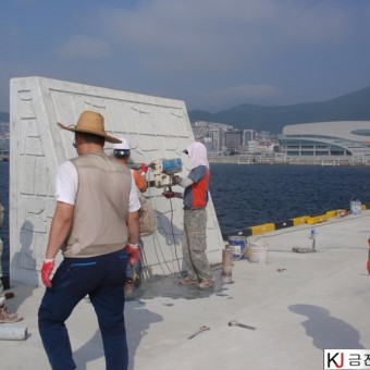 해운대 지하철역사 장애인승강기설치공사 중 와이어쏘절단