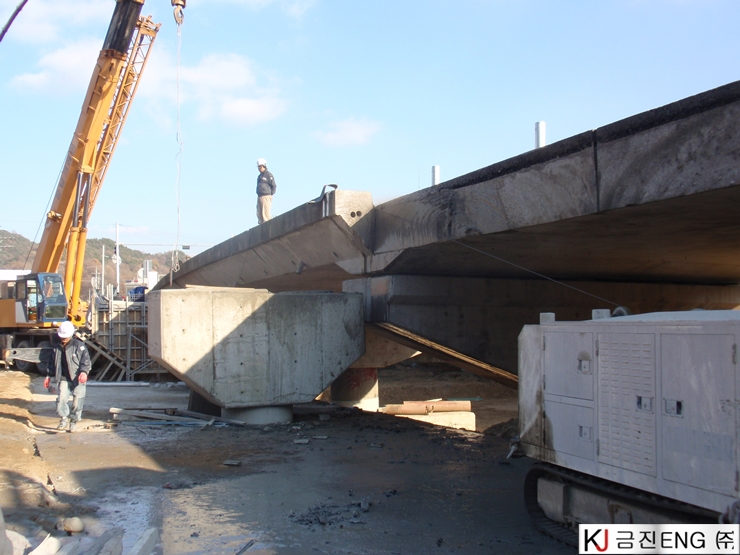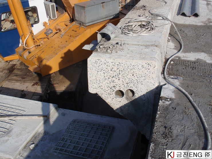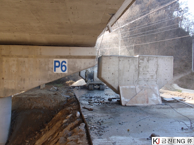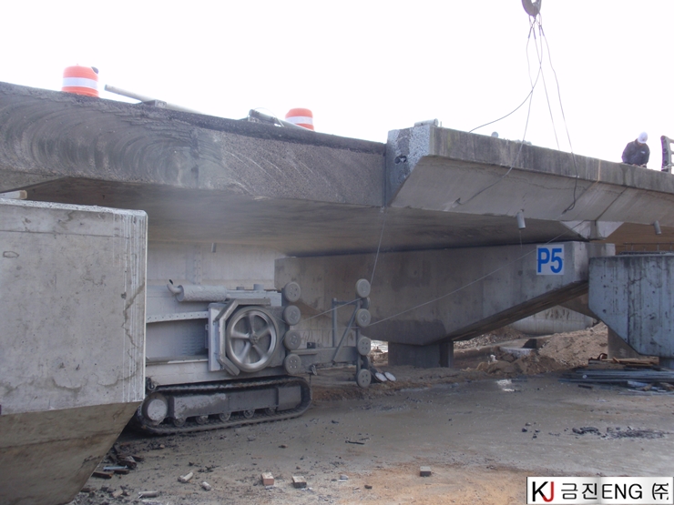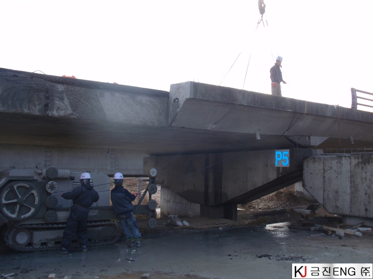 다이아몬드와이어쏘,휠쏘 | 안동 00교 교량확장공사 중 연석절단 후 인양공사
