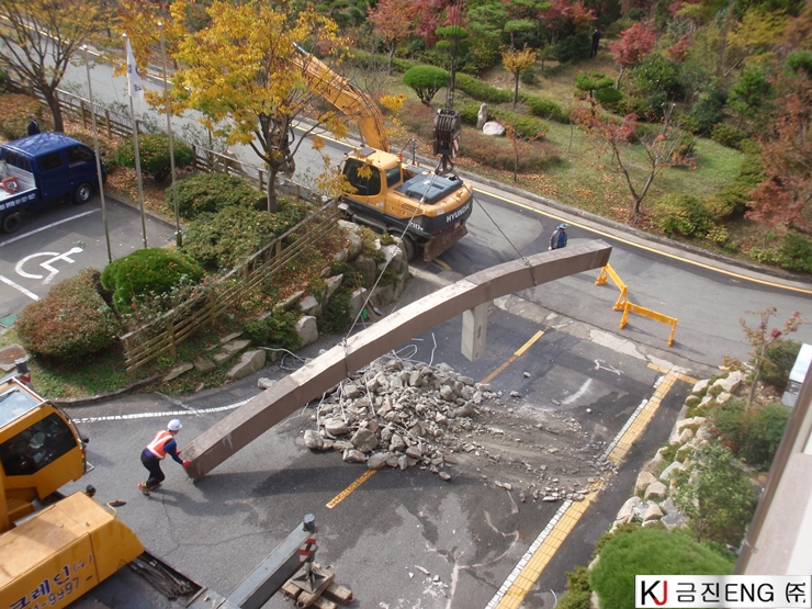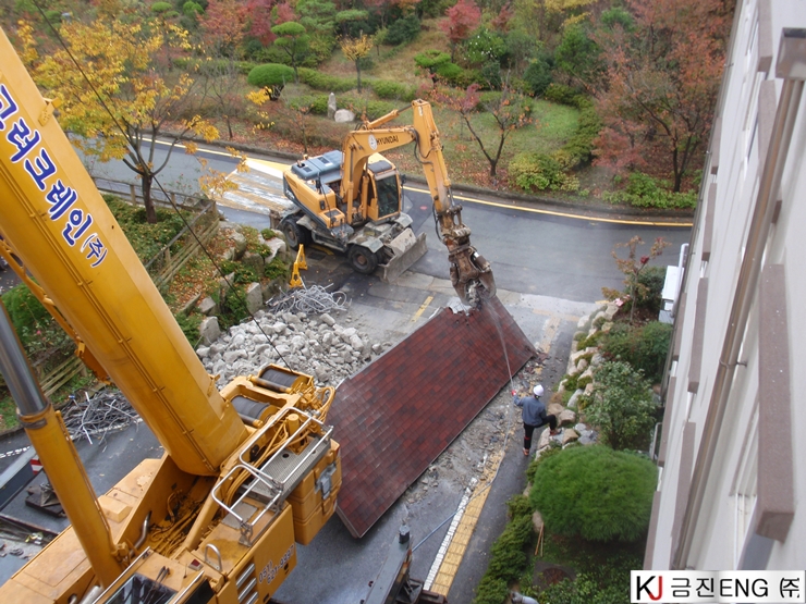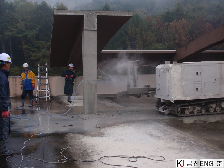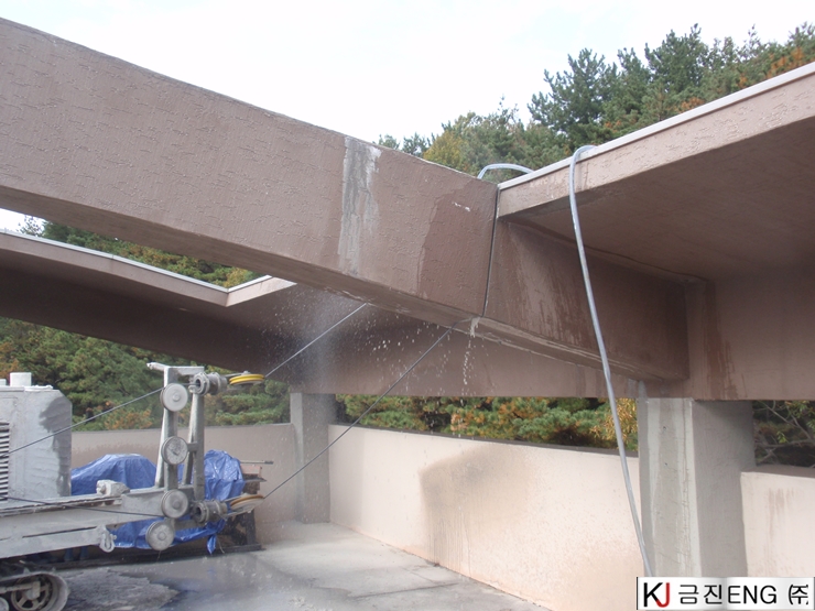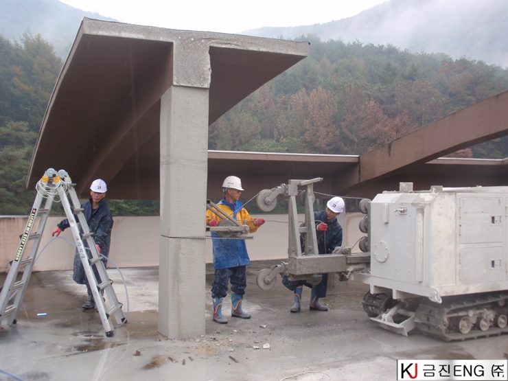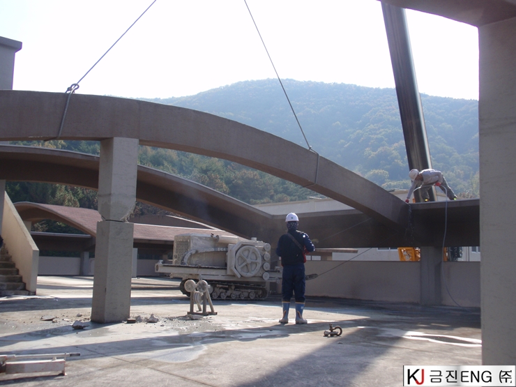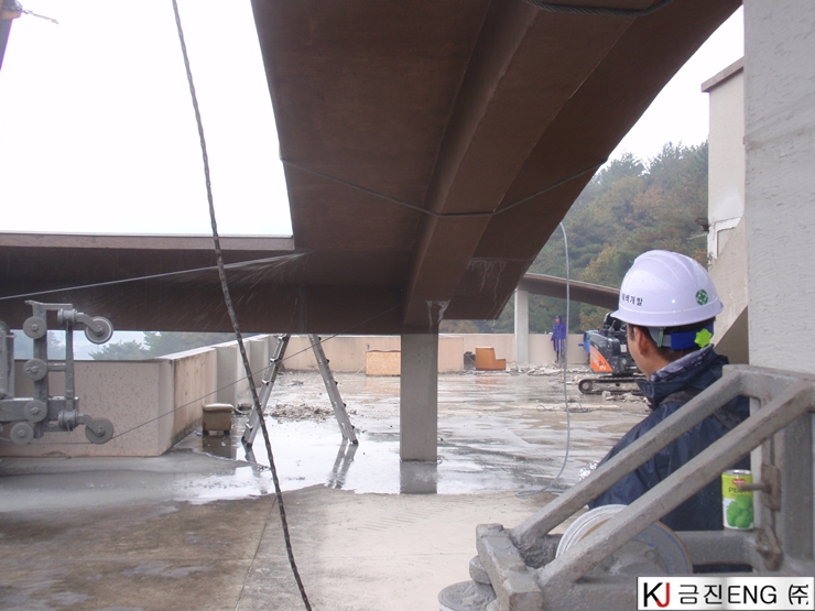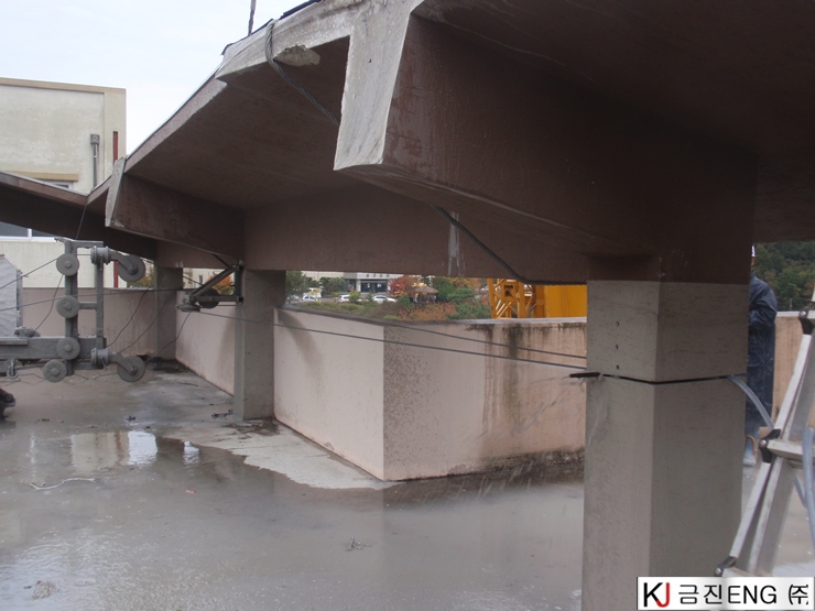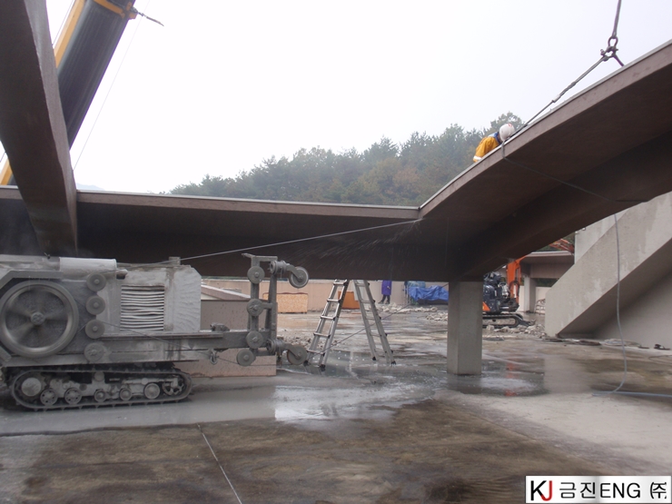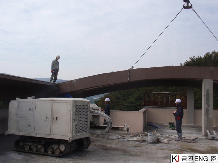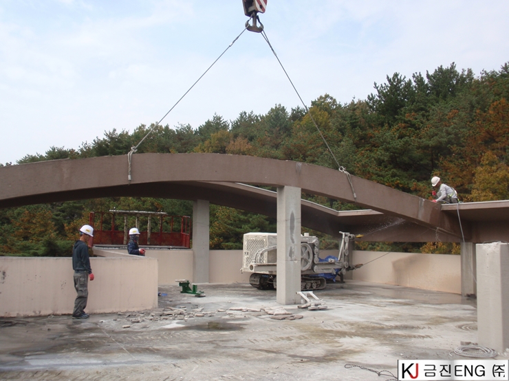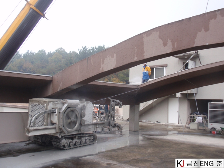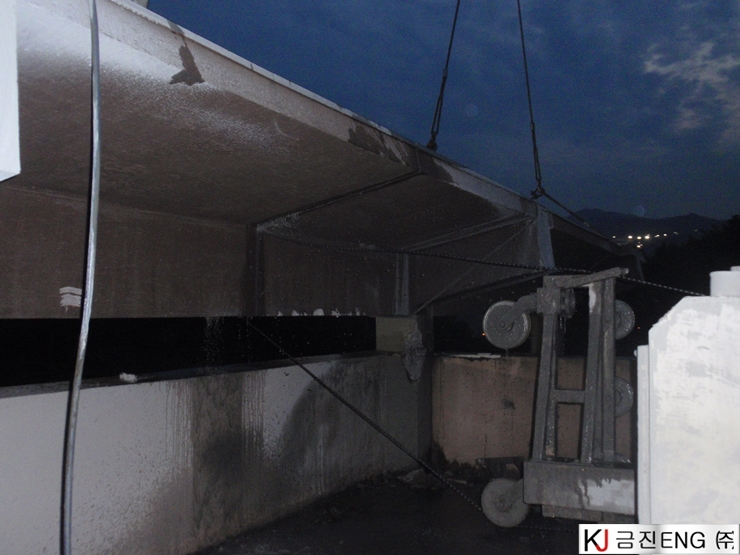 다이아몬드와이어쏘,휠쏘 | 양산 정신요양원 옥상 구조물 와이어쏘절단 후 인양해체