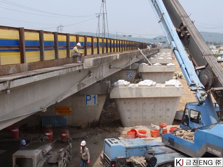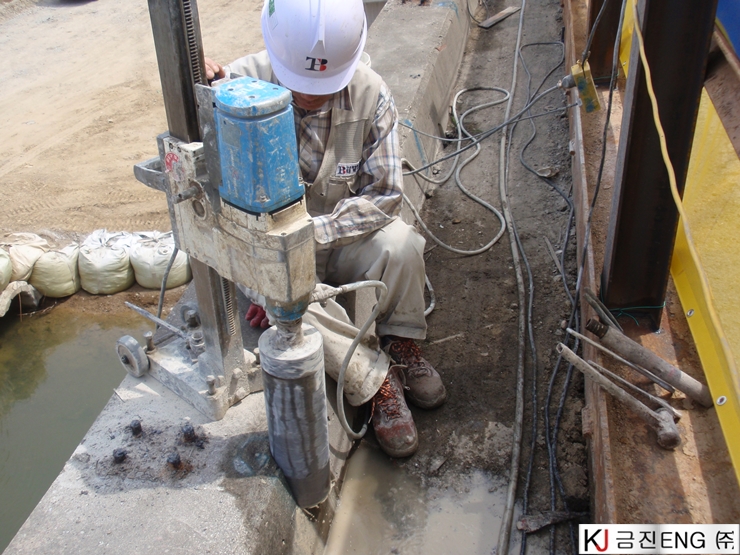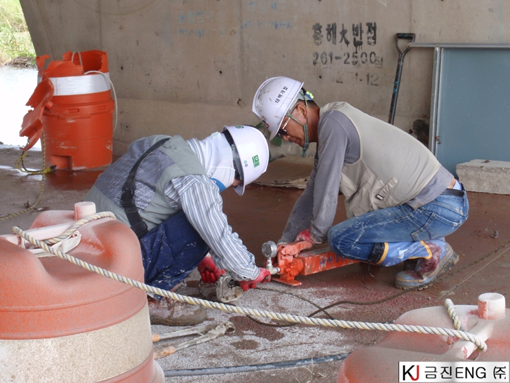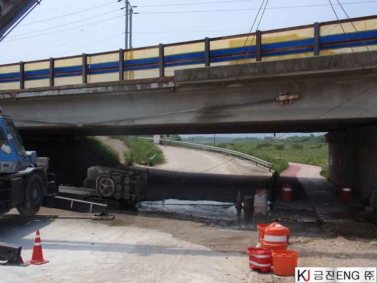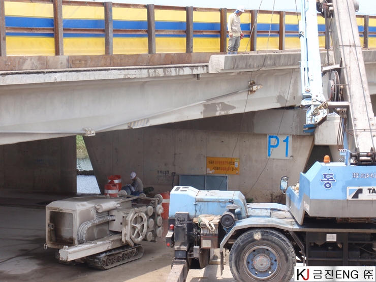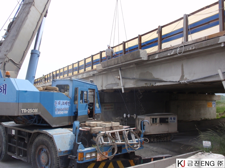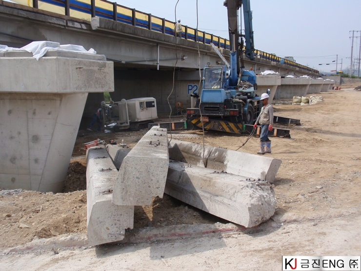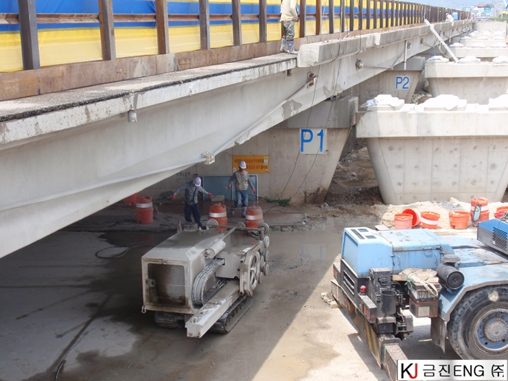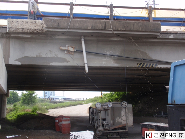 다이아몬드와이어쏘,휠쏘 | 영덕 00교 교량확장공사 중 연석 와이어쏘절단 후 인양