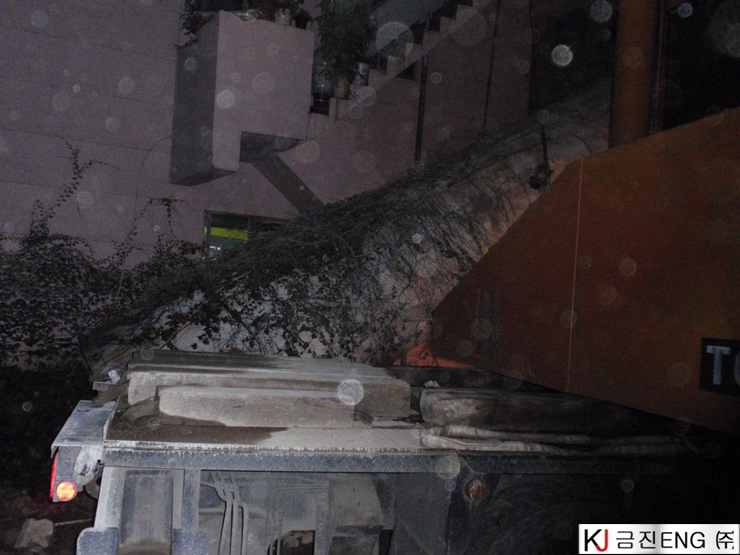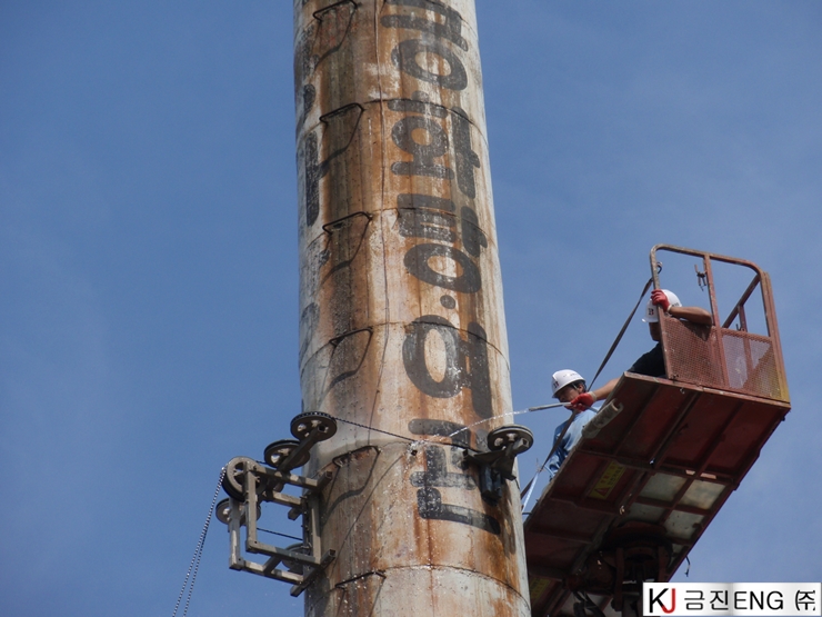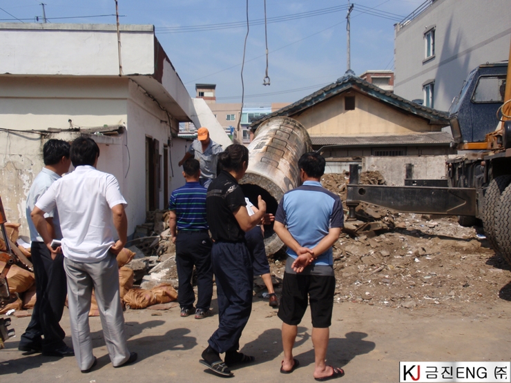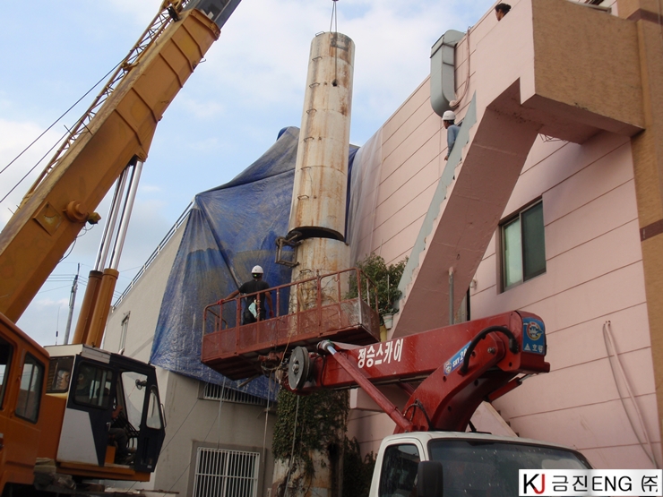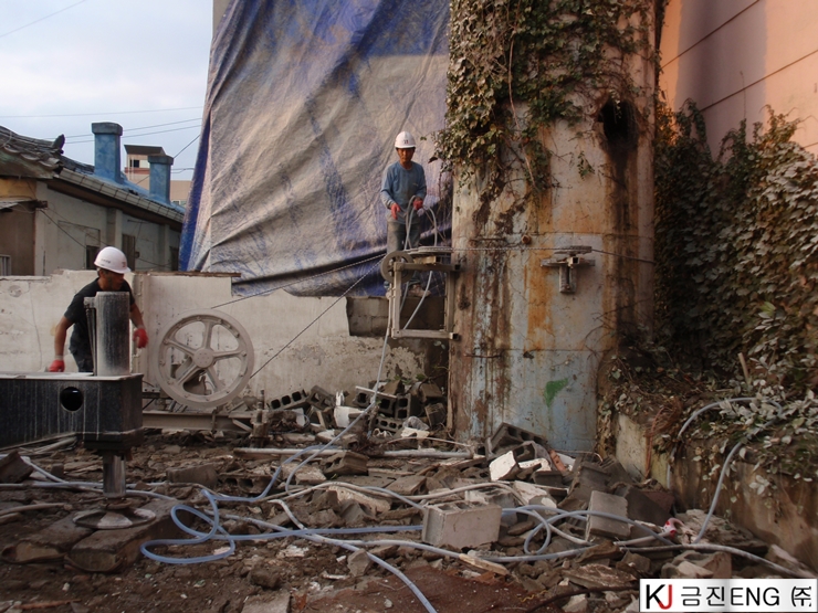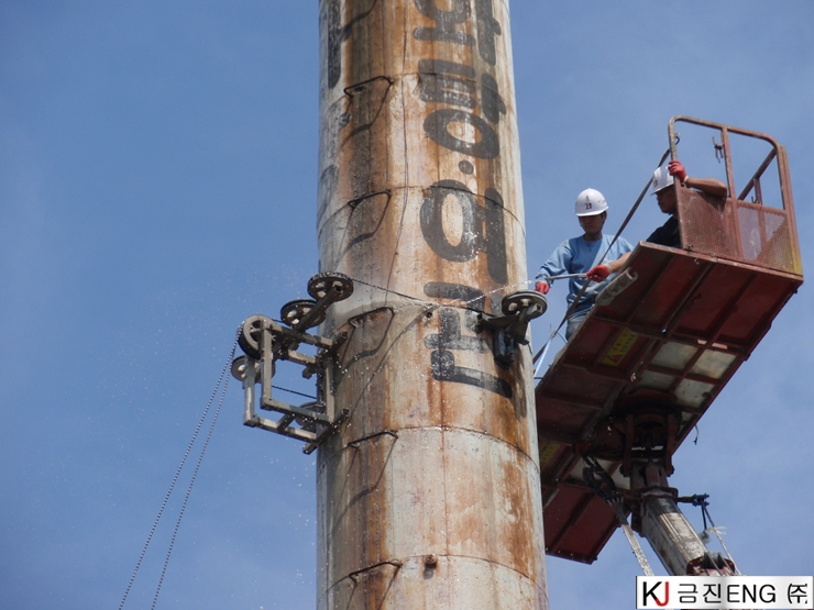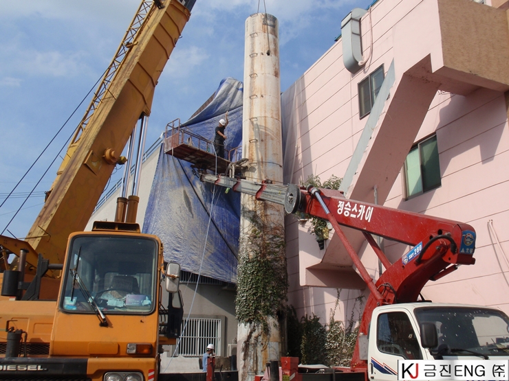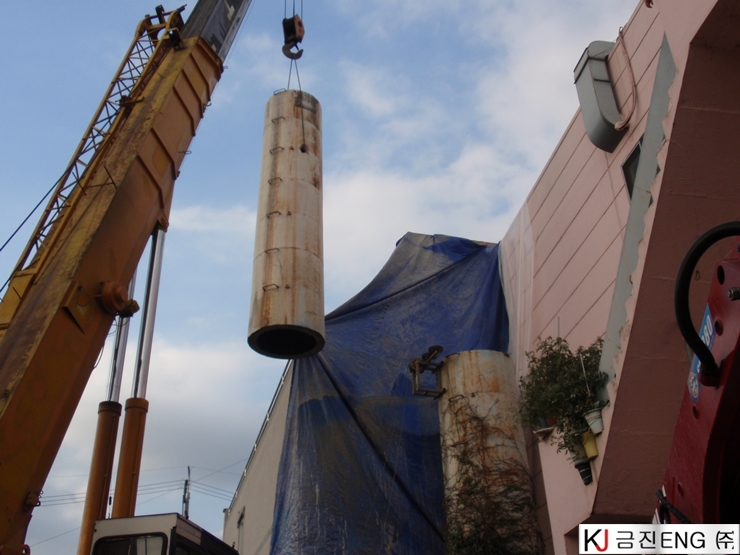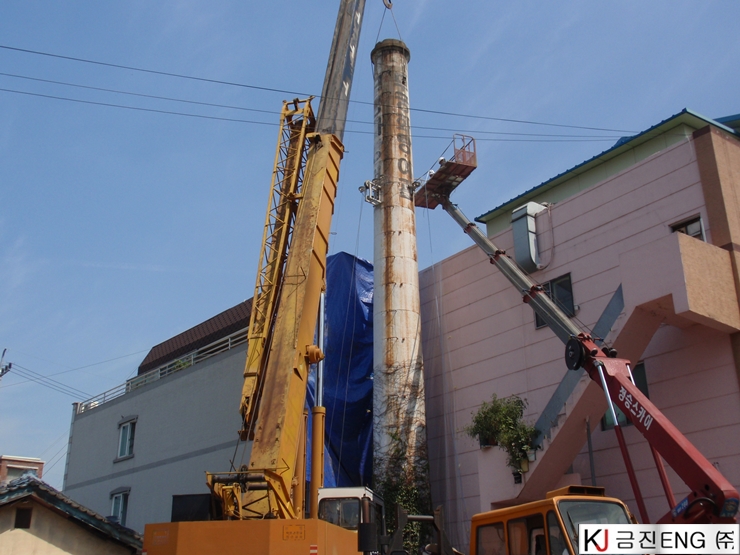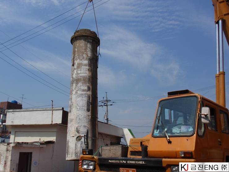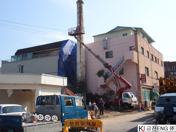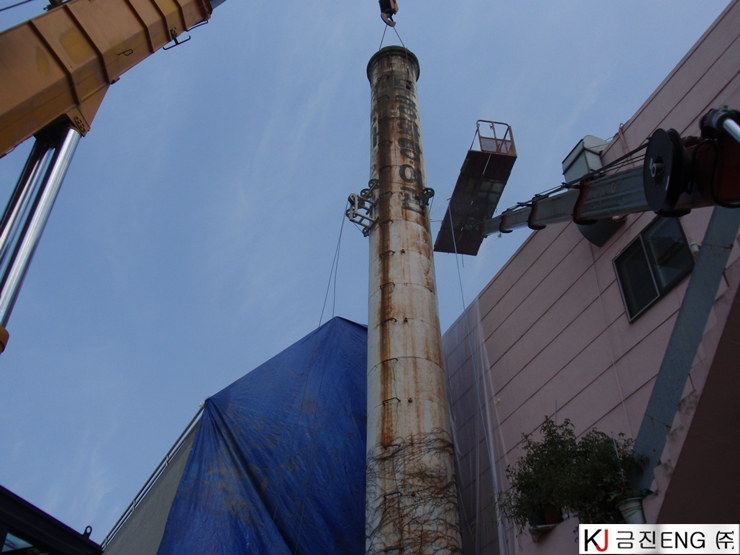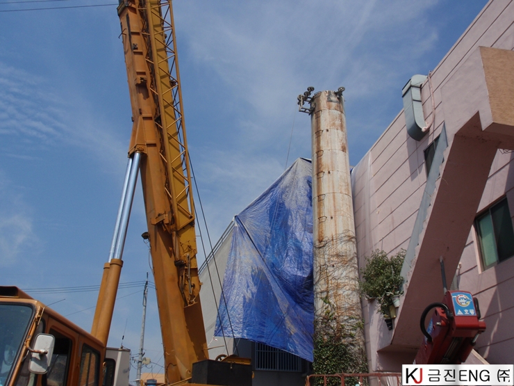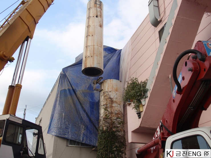 다이아몬드와이어쏘,휠쏘 | 경주 목욕탕 굴뚝 와이어쏘절단 후 인양