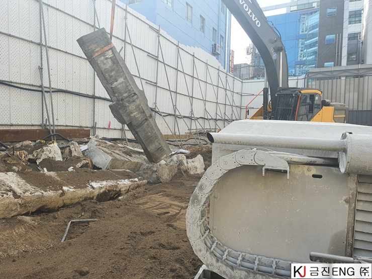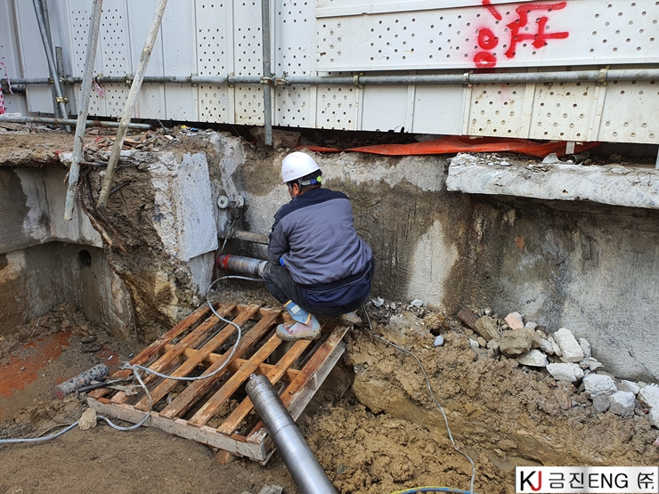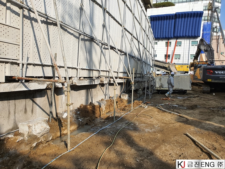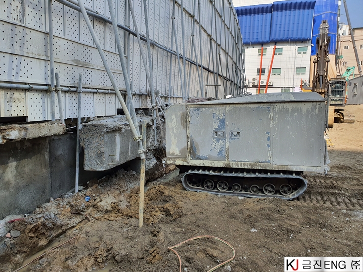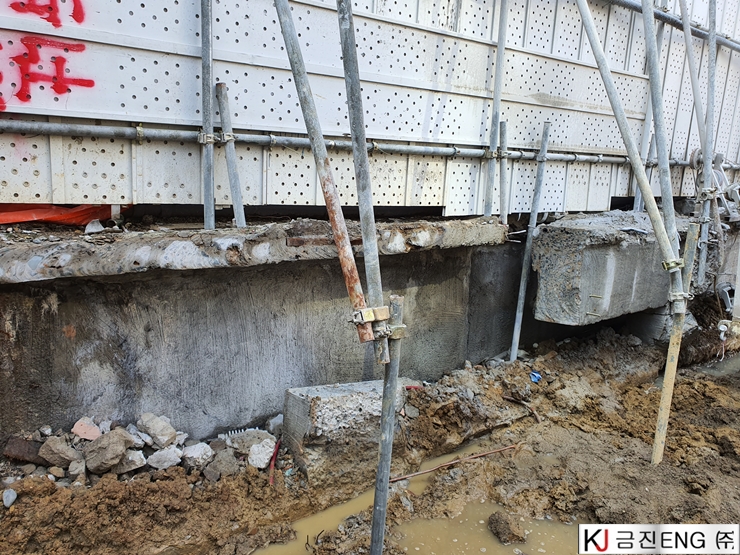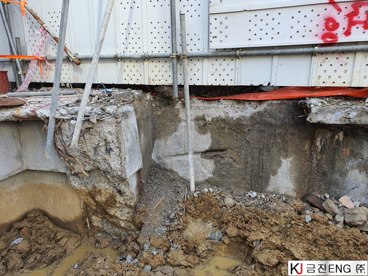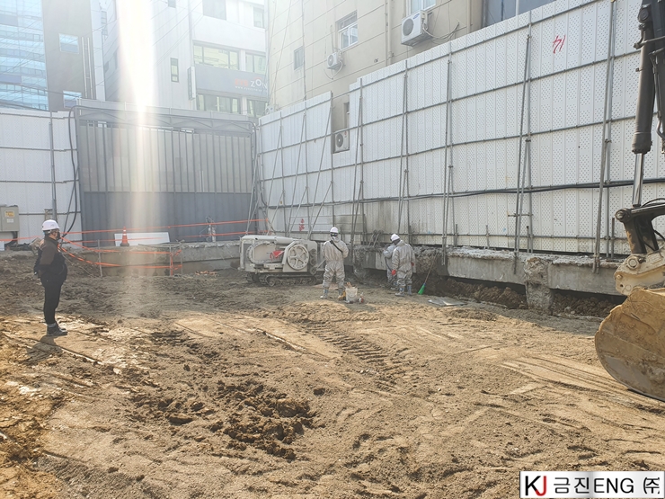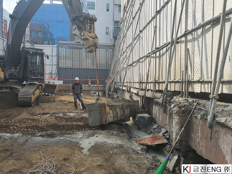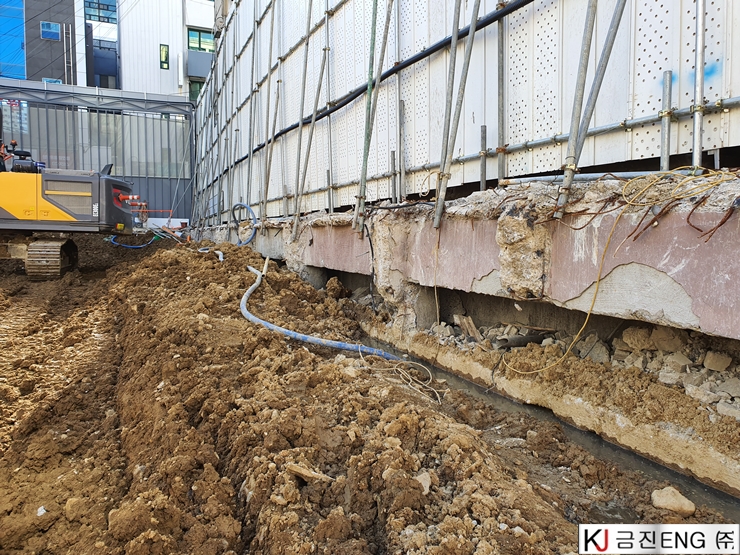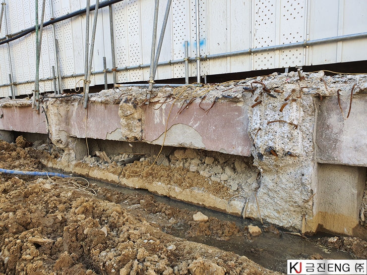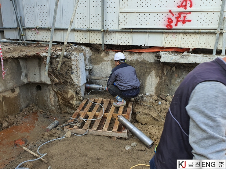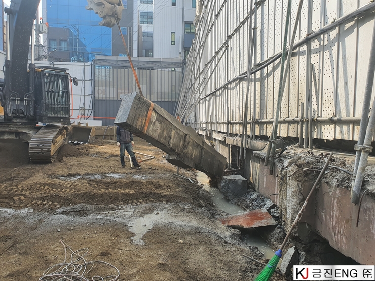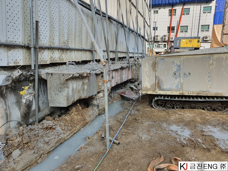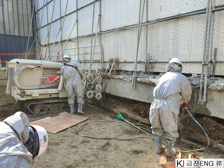 다이아몬드와이어쏘,휠쏘 | 부산 범일동 지하 터파기 중 옹벽,보 와이어쏘절단