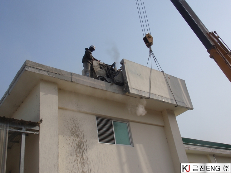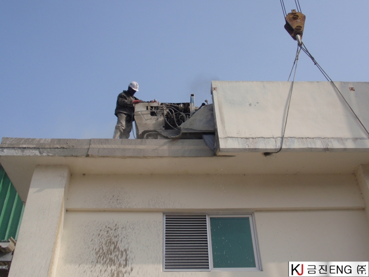 다이아몬드와이어쏘,휠쏘 | 상주 00공장 옥상 파라펫 와이어쏘,휠쏘절단 후 인양