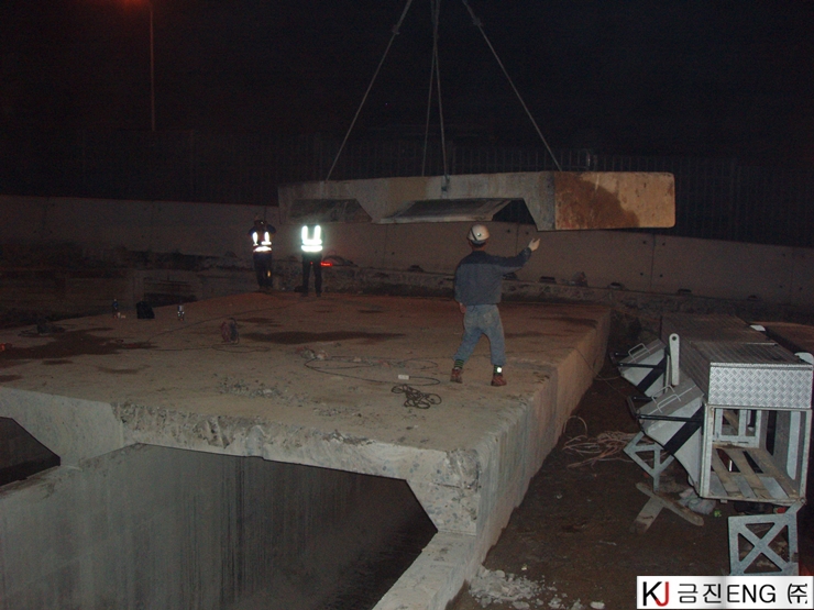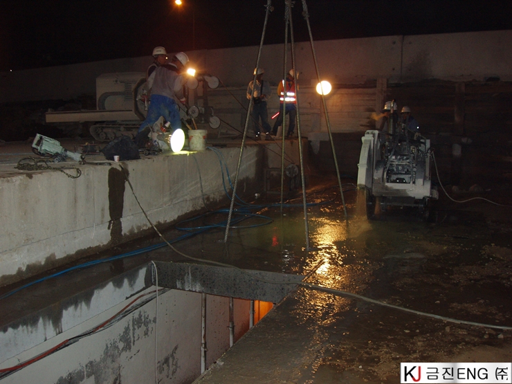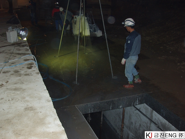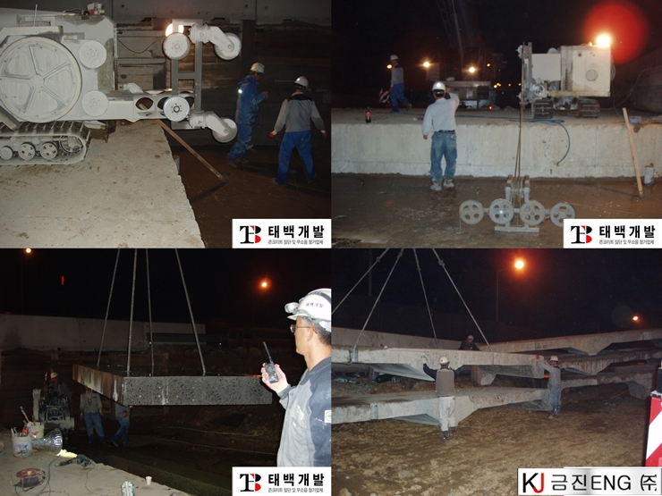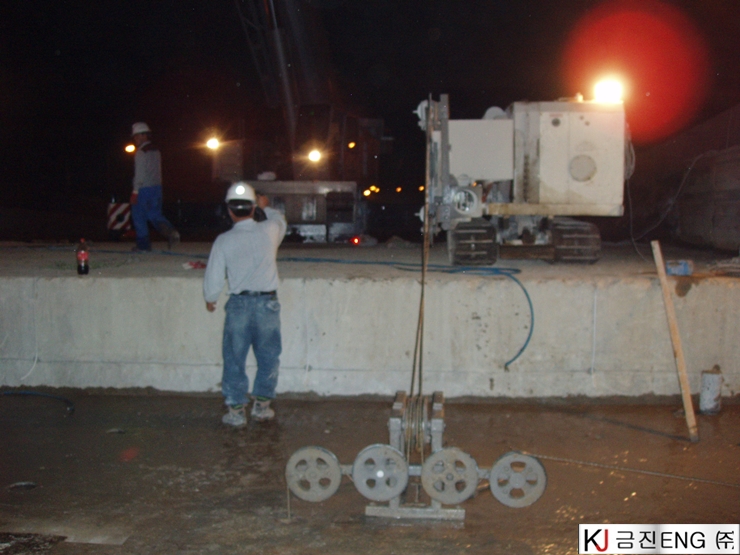 다이아몬드와이어쏘,휠쏘 | 서마산IC 고속도로확장공사 중 통로암거 와이어쏘절단 후 인양