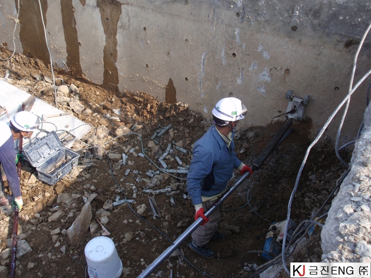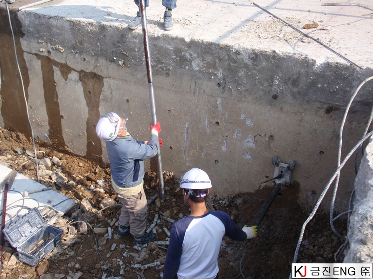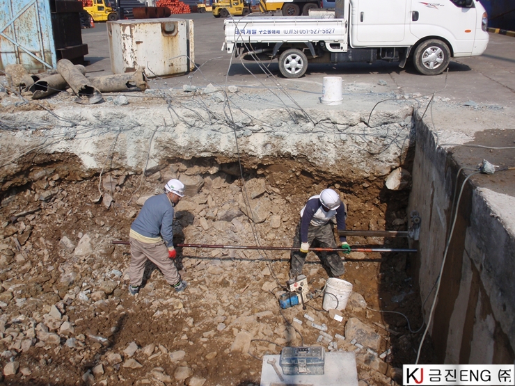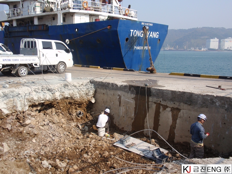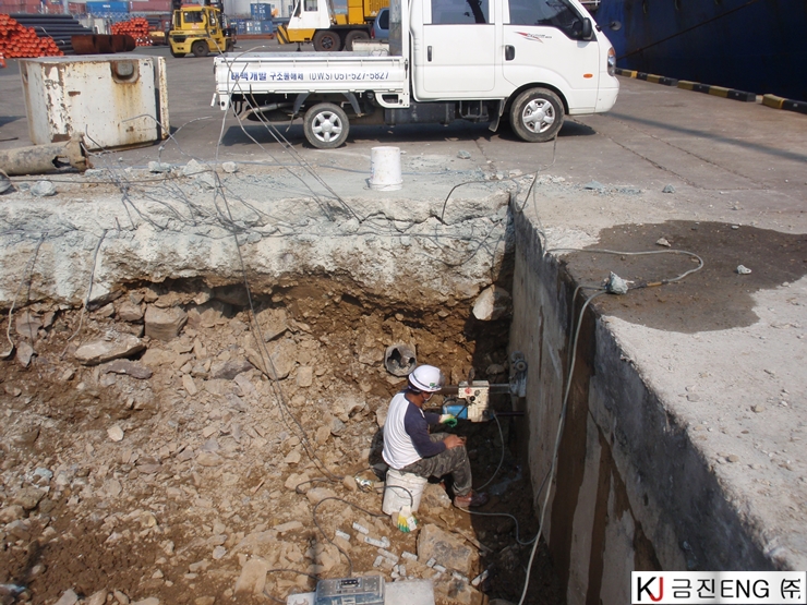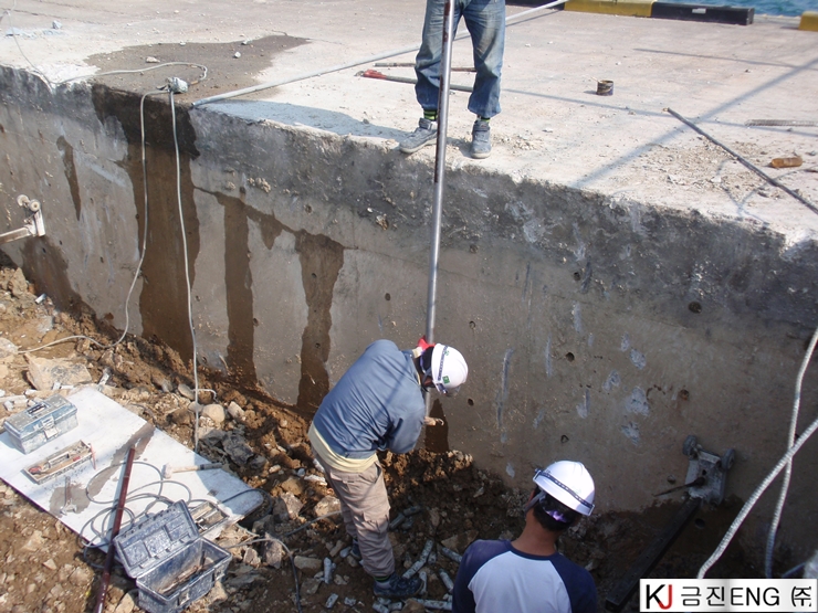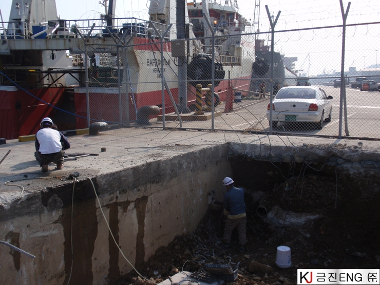 코아천공 | 부산 감천항 부두 상치콘크리트 와이어쏘절단용 코어천공 6M