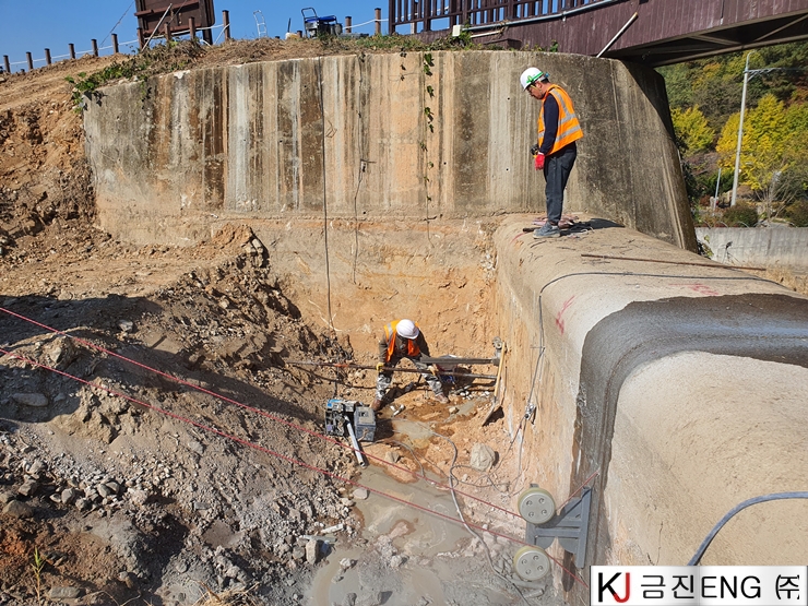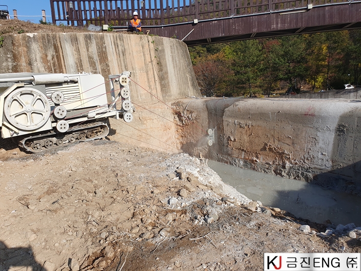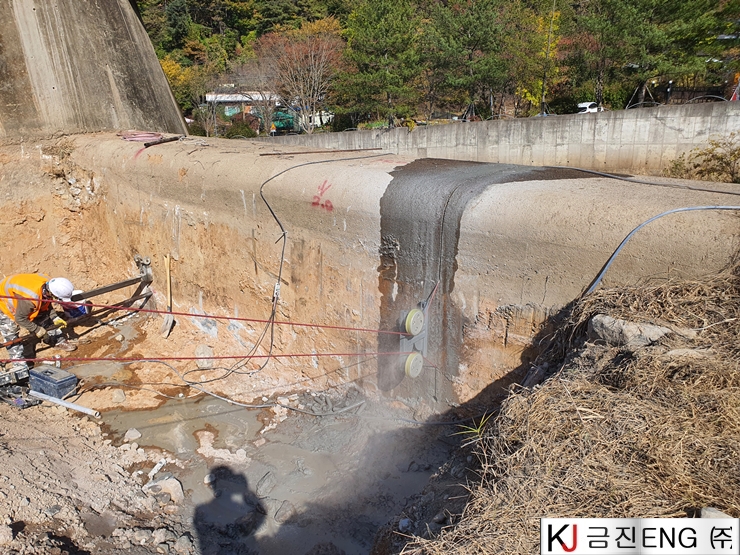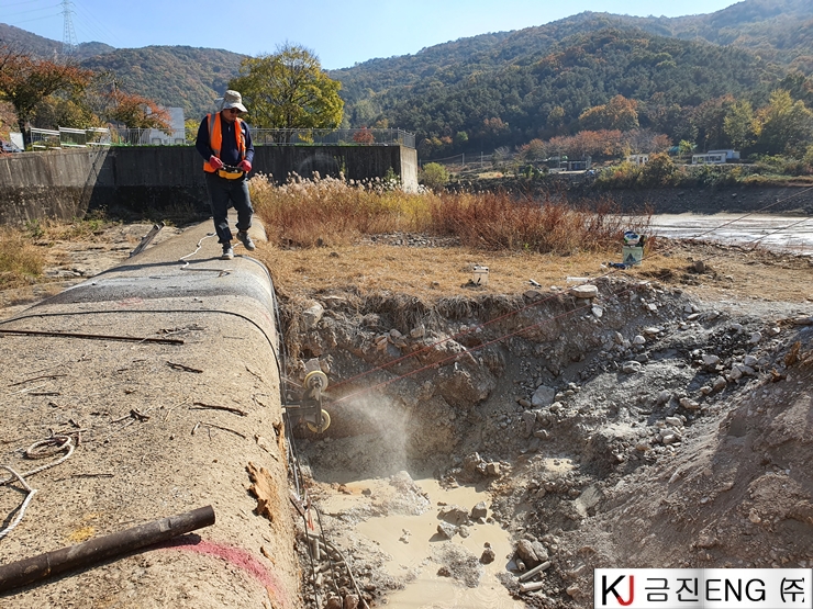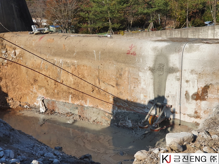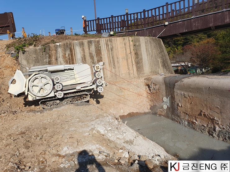 다이아몬드와이어쏘,휠쏘 | 양산 대석저수지 와이어쏘절단