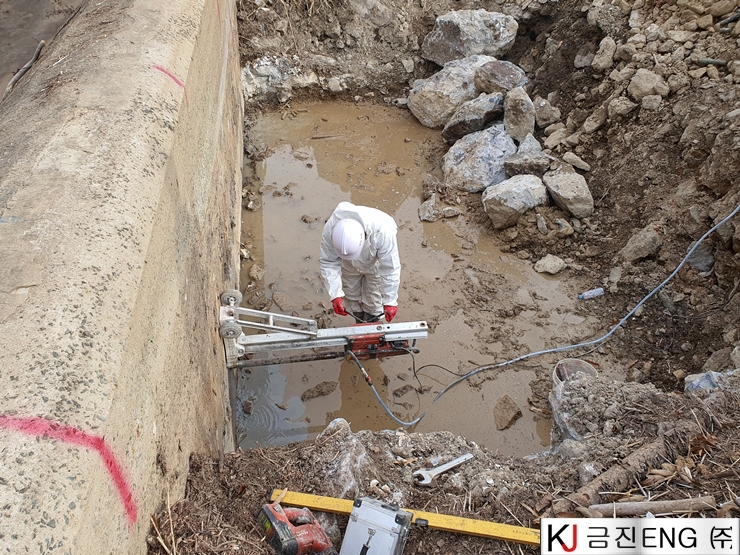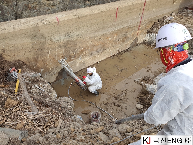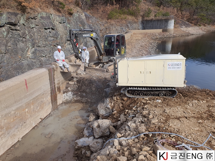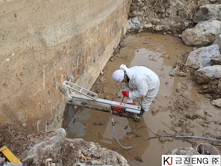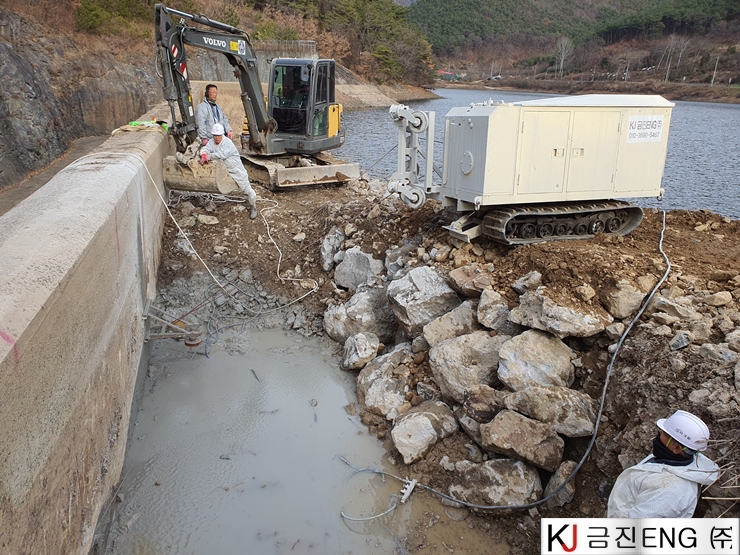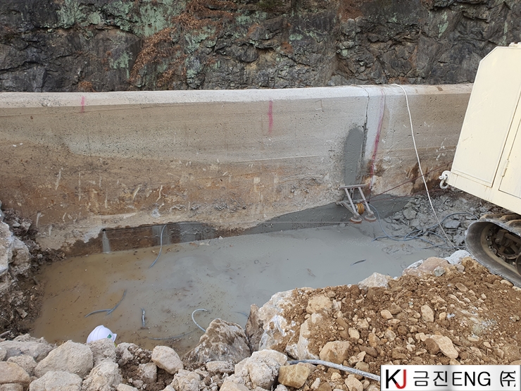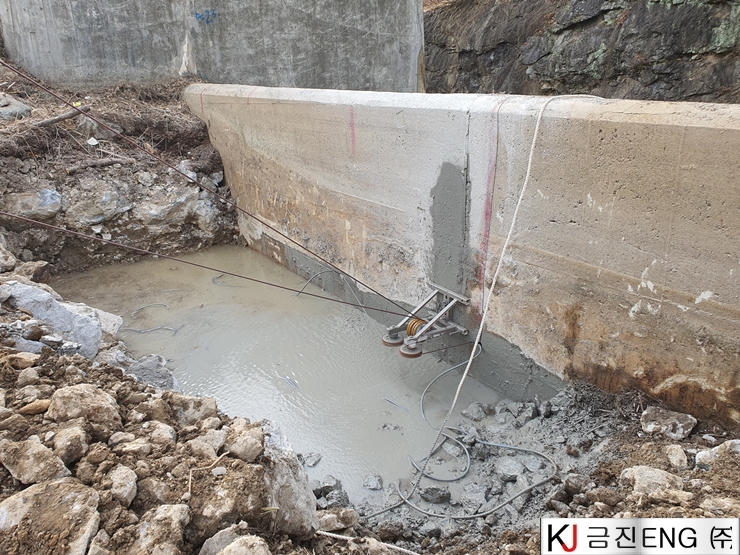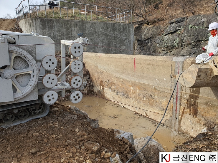 다이아몬드와이어쏘,휠쏘 | 밀양 요고저수지 자동수문설치용 물넘이 와이어쏘절단