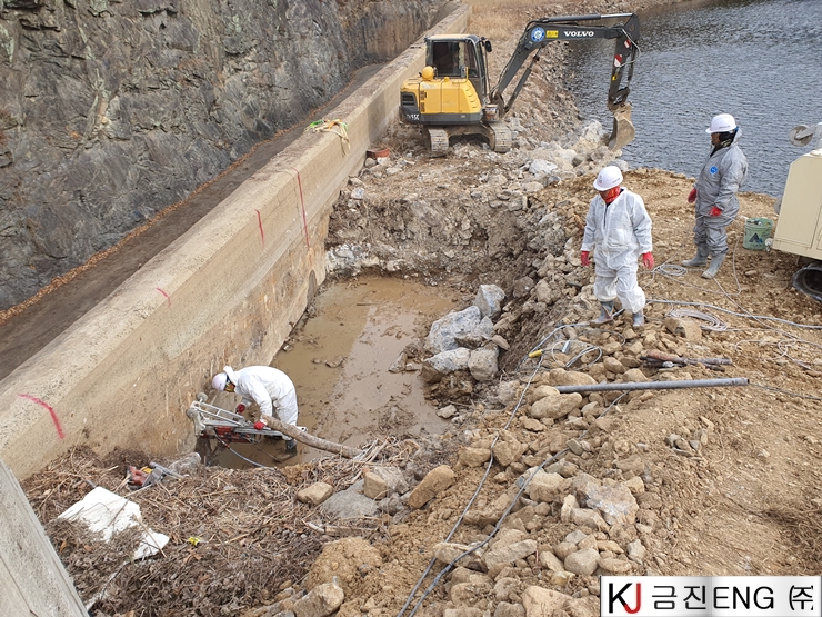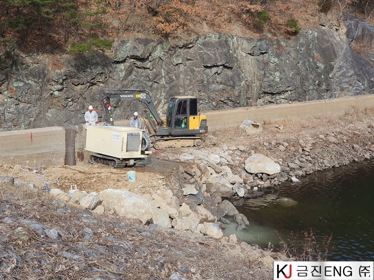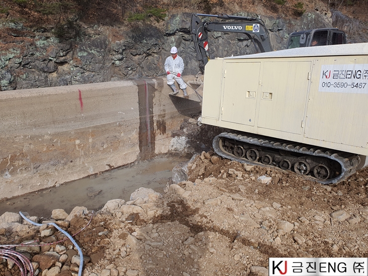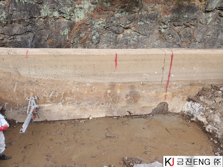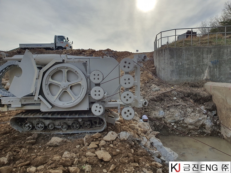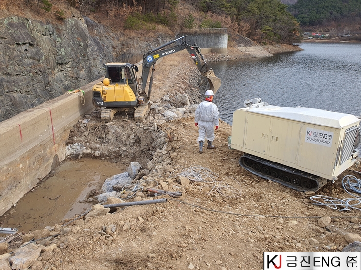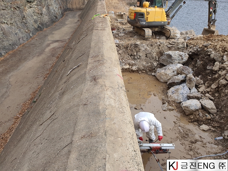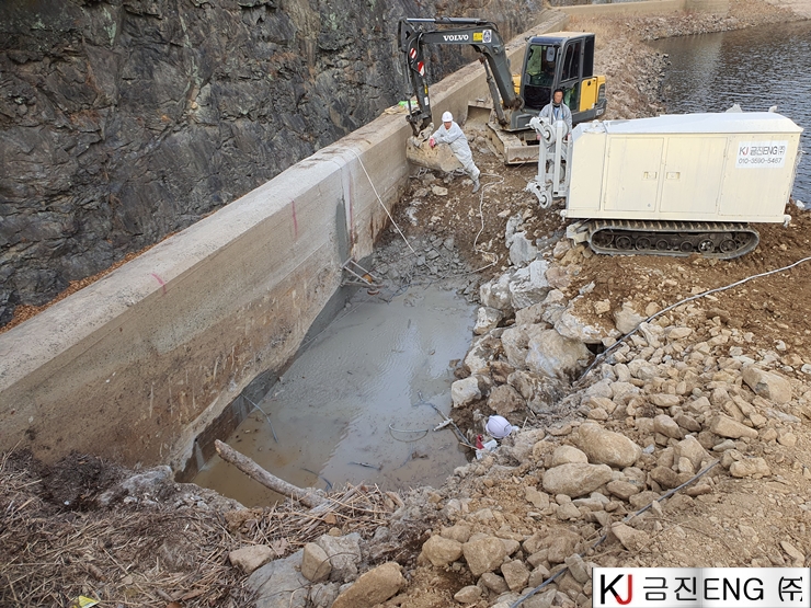 다이아몬드와이어쏘,휠쏘 | 밀양 요고저수지 자동수문설치용 물넘이 와이어쏘절단