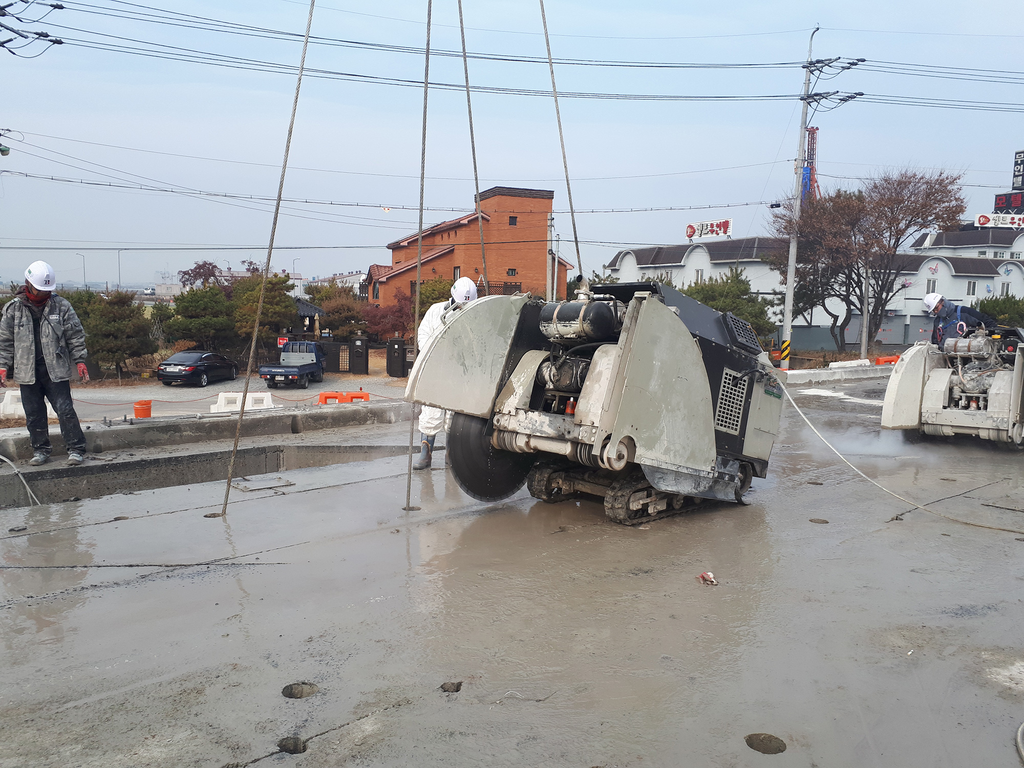 일반 로드컷터기로 절단하기 어려운 두께 200mm이상의 슬래브 및 바닥절단에 용이하며