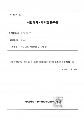 석면해체·제거업 등록증