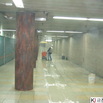 지하철역사 장애인 유도블럭설치공사 중 철거공사