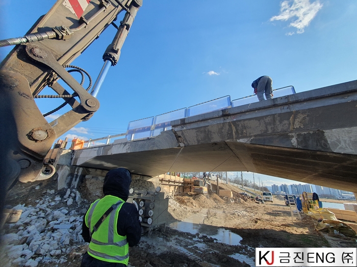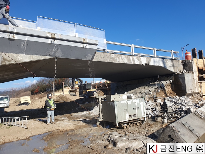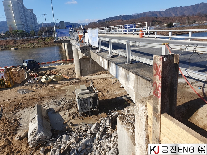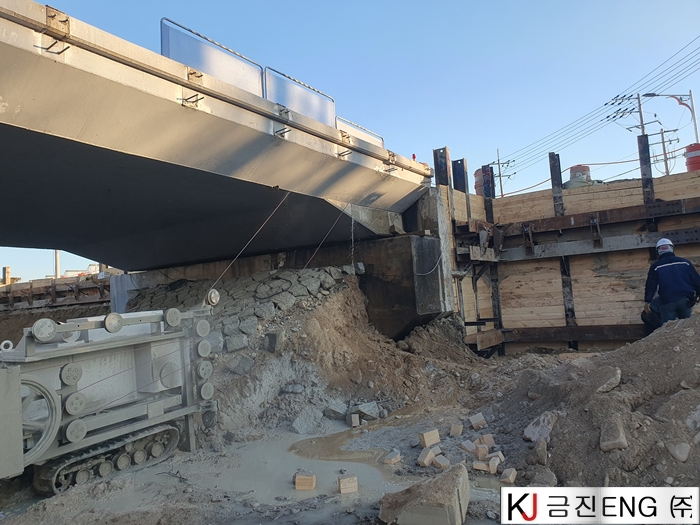 다이아몬드와이어쏘,휠쏘 | 교량 가각부 확장공사 중 연석 와이어쏘절단